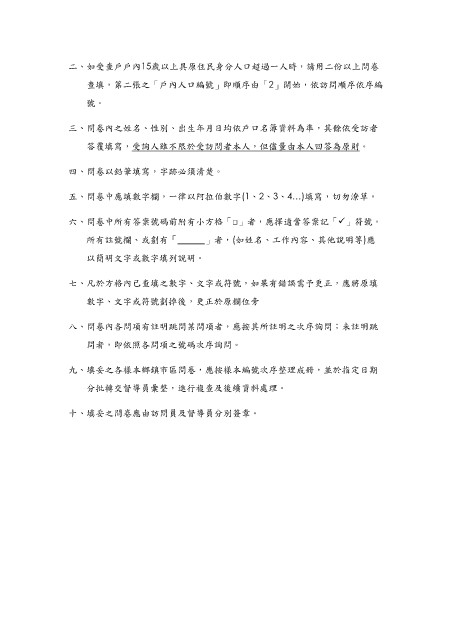 九、填妥之各樣本鄉鎮市區問卷,應按樣本編號次序整理成冊,並於指定日期