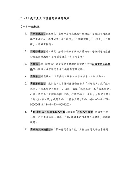 二、15 歲以上人口調查問項填寫說明