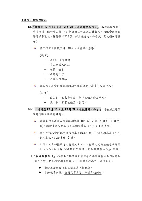 B1.「請問您 12 月 15 日至 12 月 21 日在做什麼工作?」:本題為開放題,
