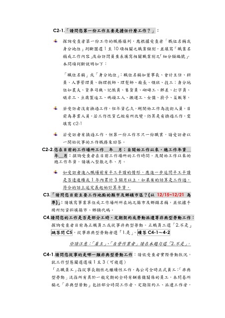 稱或工作內容」及由訪問員查表填寫相關職業別之「細分類編號」。