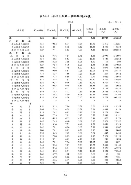 表A2-1 原住民年齡-按地區別分(續)