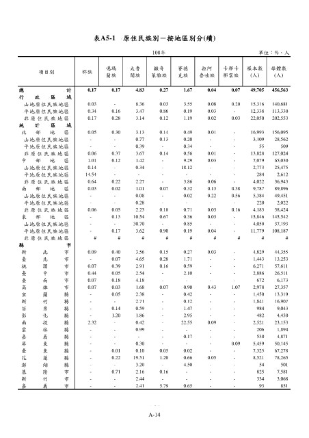 表A5-1 原住民族別-按地區別分(續)