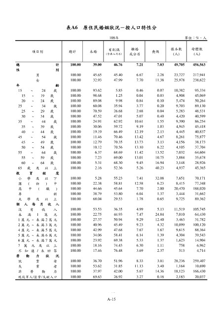 非 勞 動 力 100.00 37.97 42.00 5.67 14.36 18,123 166,430