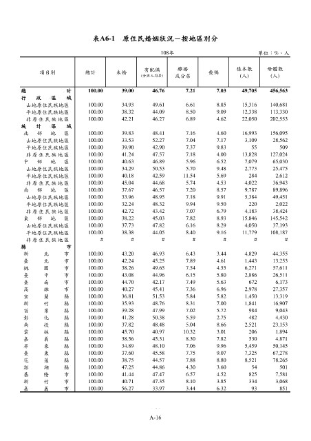 平地原住民族地區 100.00 38.32 44.09 8.50 9.09 12,338 113,330