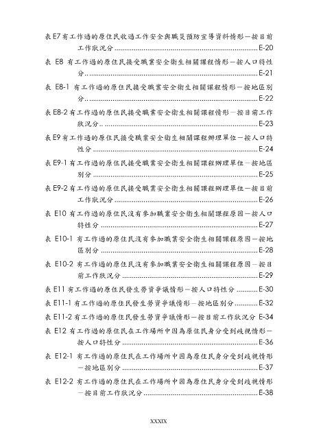 表 E11 有工作過的原住民發生勞資爭議情形-按人口特性分 ........... E-30