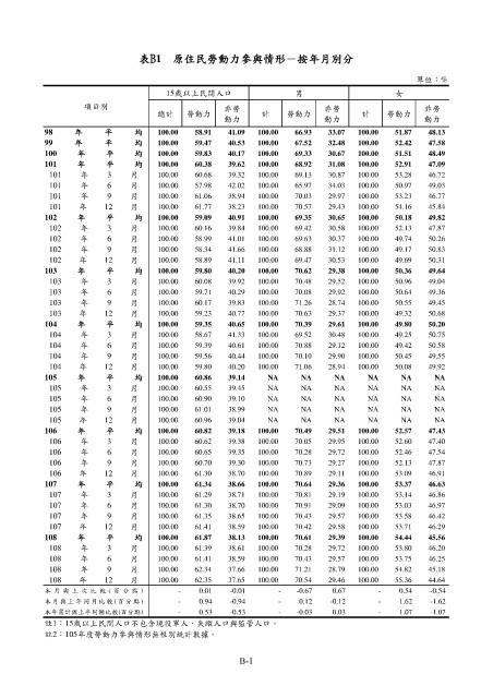 表B1 原住民勞動力參與情形-按年月別分