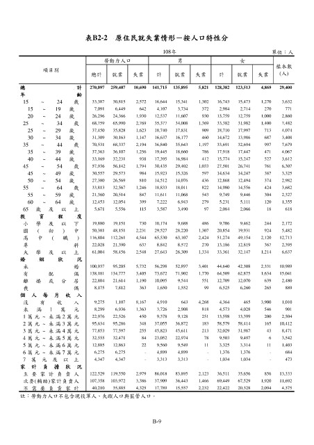 表B2-2 原住民就失業情形-按人口特性分