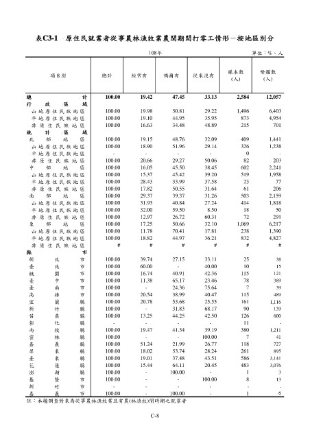 表C3-1 原住民就業者從事農林漁牧業農閒期間打零工情形-按地區別分
