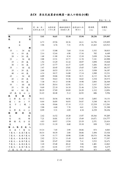 表C4 原住民就業者的職業-按人口特性分(續)