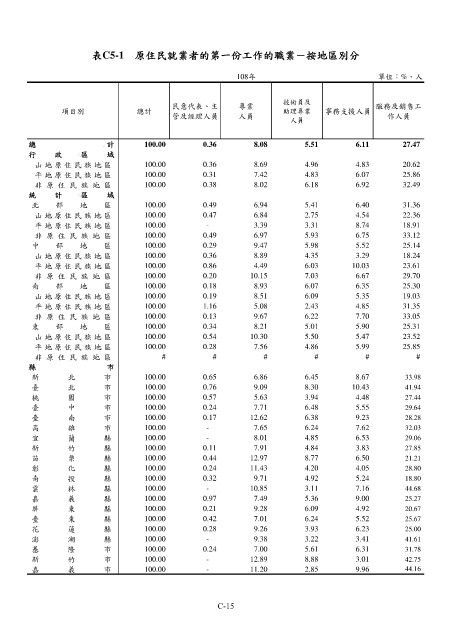 表C5-1 原住民就業者的第一份工作的職業-按地區別分