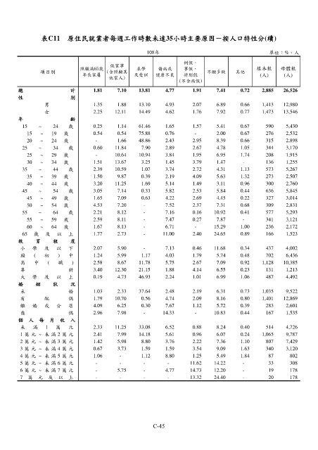 表C11 原住民就業者每週工作時數未達35小時主要原因-按人口特性分(續)