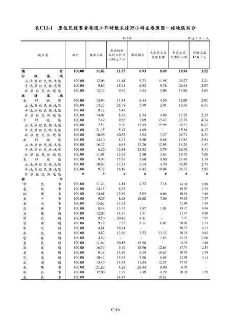 表C11-1 原住民就業者每週工作時數未達35小時主要原因-按地區別分