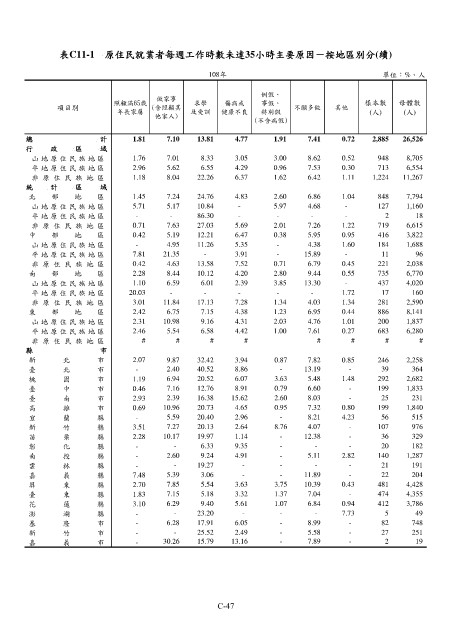 表C11-1 原住民就業者每週工作時數未達35小時主要原因-按地區別分(續)