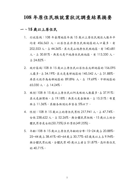 108 年原住民族就業狀況調查結果摘要