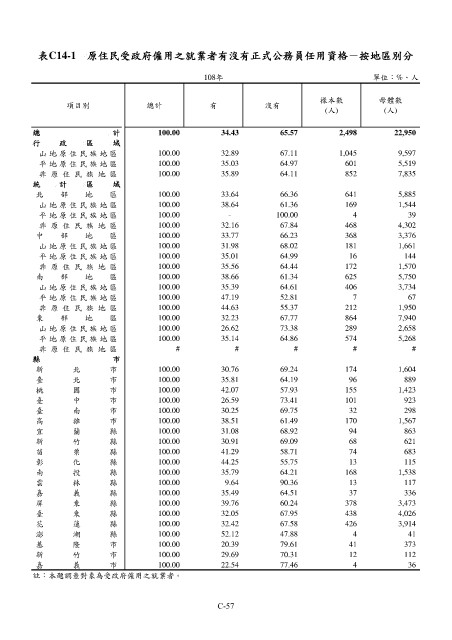 表C14-1 原住民受政府僱用之就業者有沒有正式公務員任用資格-按地區別分