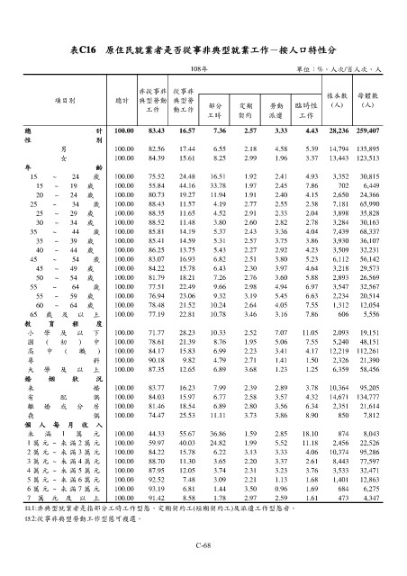 表C16 原住民就業者是否從事非典型就業工作-按人口特性分