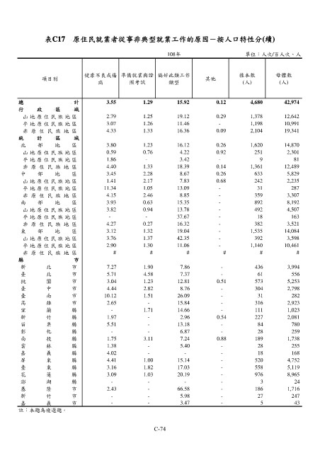 表C17 原住民就業者從事非典型就業工作的原因-按人口特性分(續)