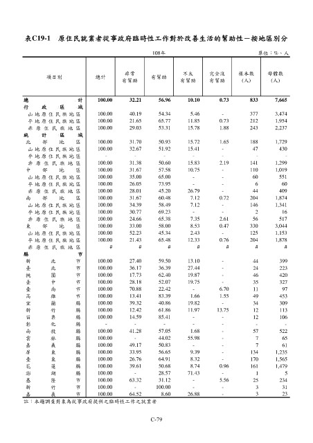 表C19-1 原住民就業者從事政府臨時性工作對於改善生活的幫助性-按地區別分
