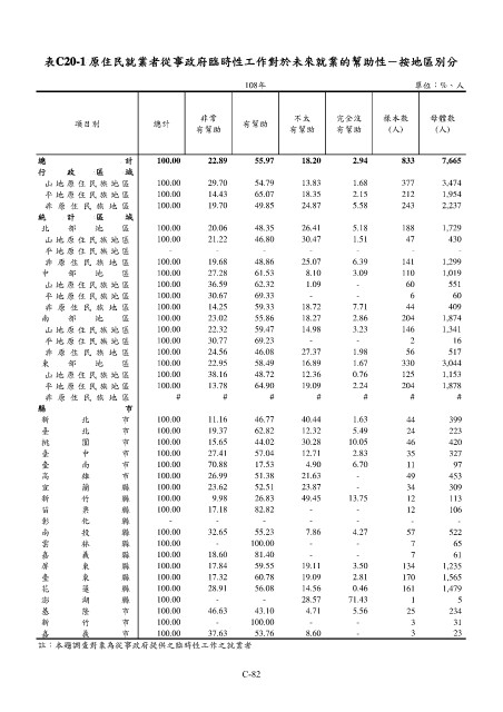 表C20-1 原住民就業者從事政府臨時性工作對於未來就業的幫助性-按地區別分