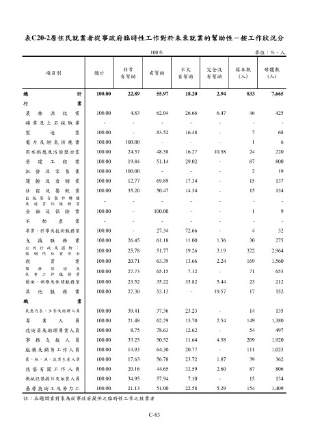 表C20-2原住民就業者從事政府臨時性工作對於未來就業的幫助性-按工作狀況分