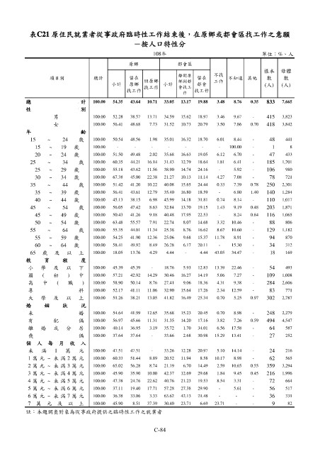 表C21 原住民就業者從事政府臨時性工作結束後,在原鄉或都會區找工作之意願
