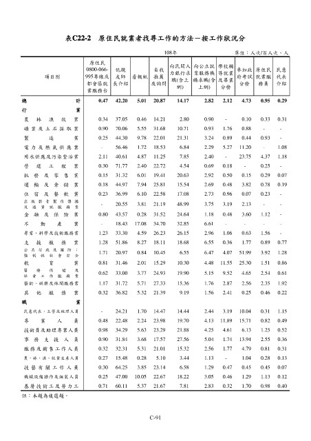 表C22-2 原住民就業者找尋工作的方法-按工作狀況分