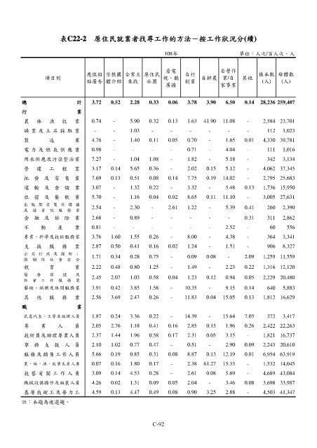 表C22-2 原住民就業者找尋工作的方法-按工作狀況分(續)