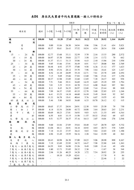 沒 有 收 入 100.00 10.43 10.98 26.30 37.00 10.23 5.06 20.90 890 8,167