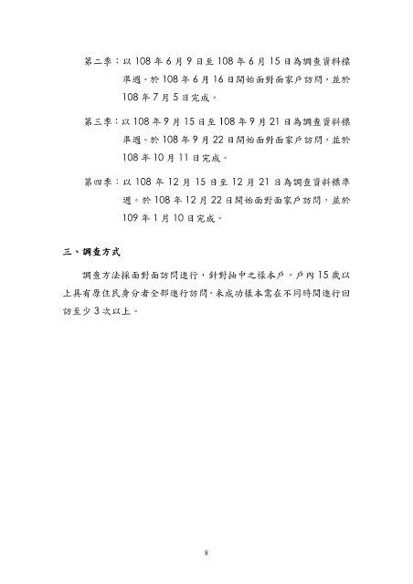 週。於 108 年 12 月 22 日開始面對面家戶訪問,並於