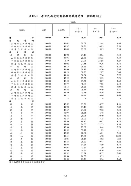 表E3-1 原住民再度就業者離開職場時間-按地區別分