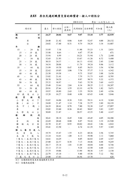表E5 原住民遇到職業災害的賠償者-按人口特性分