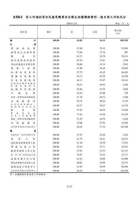 表E8-2 有工作過的原住民接受職業安全衛生相關課程情形-按目前工作狀況分