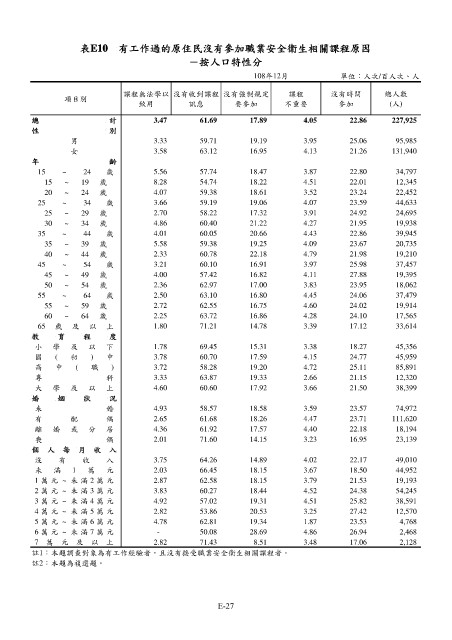 表E10 有工作過的原住民沒有參加職業安全衛生相關課程原因