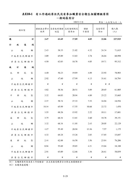 表E10-1 有工作過的原住民沒有參加職業安全衛生相關課程原因