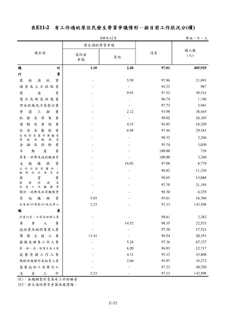 表E11-2 有工作過的原住民發生勞資爭議情形-按目前工作狀況分(續)