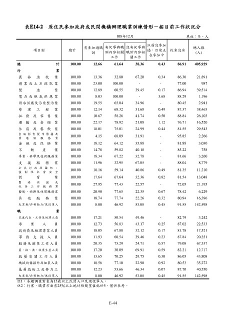 表E14-2 原住民參加政府或民間機構辦理職業訓練情形-按目前工作狀況分
