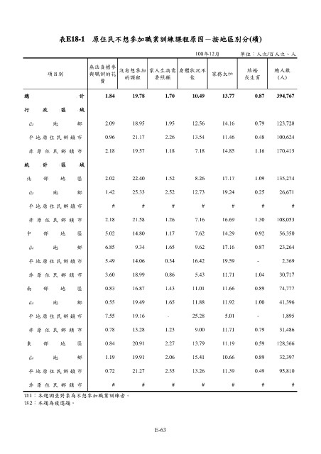 表E18-1 原住民不想參加職業訓練課程原因-按地區別分(續)