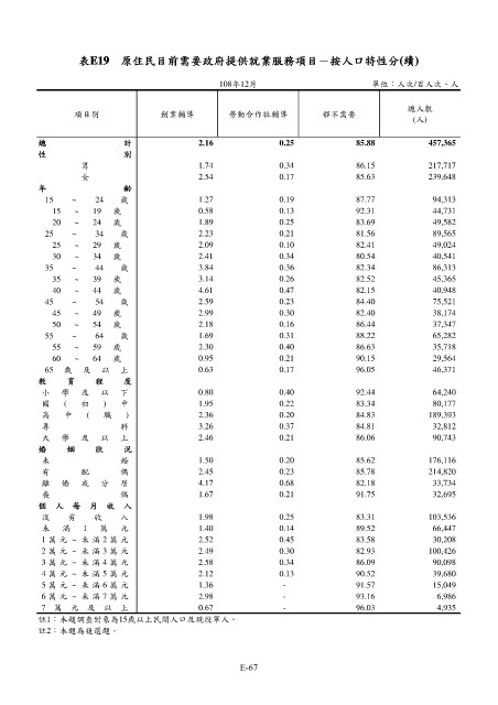 表E19 原住民目前需要政府提供就業服務項目-按人口特性分(續)