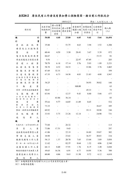 表E24-2 原住民有工作者沒有參加勞工保險原因-按目前工作狀況分