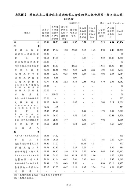 表E25-2 原住民有工作者沒有透過職業工會參加勞工保險原因-按目前工作