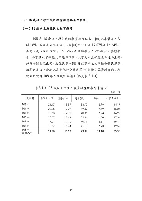 三、15 歲以上原住民之教育程度與婚姻狀況