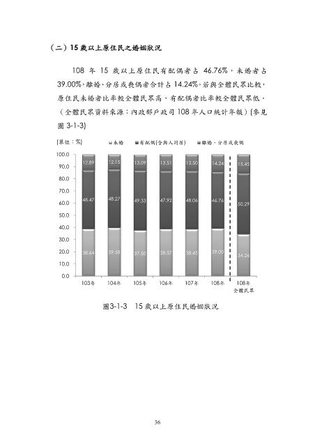 圖3-1-3 15 歲以上原住民婚姻狀況