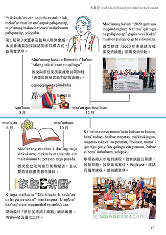 malasbunun tu petasan taqu pasadu. 辦理各類人才培訓課程,包含族語口筆譯、