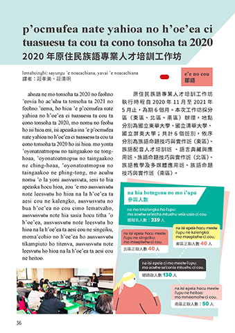 cono tonsoha ta 2020 ho isi hioa. mo yonta 分別為族語命題技巧與實作班(東區)、