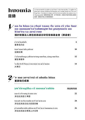 目錄 《toʉsvʉsvʉtʉ》為鄒語談論之意,本刊物名稱、封面文字與目錄皆以鄒語
