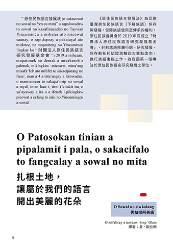 to sowal no kasafinacadan no Taywan 與發展,保障族語使用及傳承的權利,