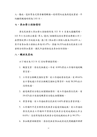 1. 職業災害:原住民族最近一年有 0.99%曾在工作場所遇到職