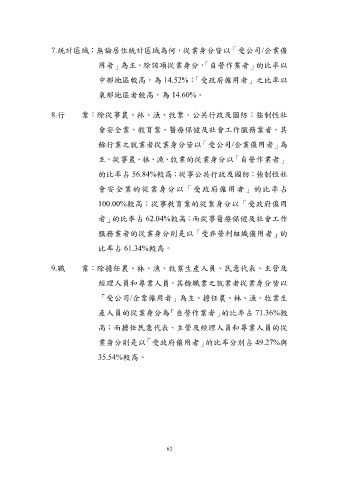中部地區較高,為 14.52%;「受政府僱用者」之比率以