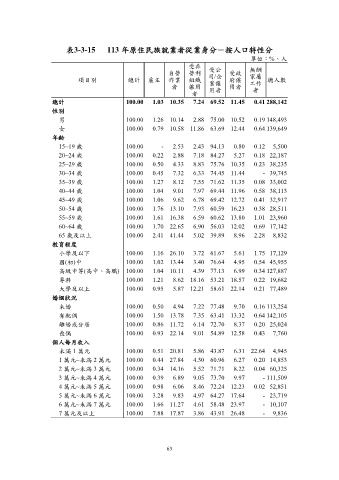 表3-3-15 113 年原住民族就業者從業身分-按人口特性分