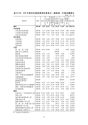 表3-3-16 113 年原住民族就業者從業身分-按區域、行業及職業分
